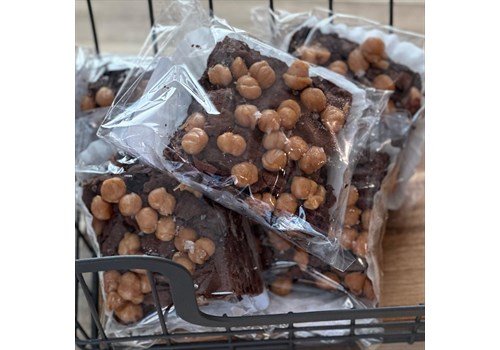 Fudge brownies made with Gluten Free Flour, topped with caramel and sea salt