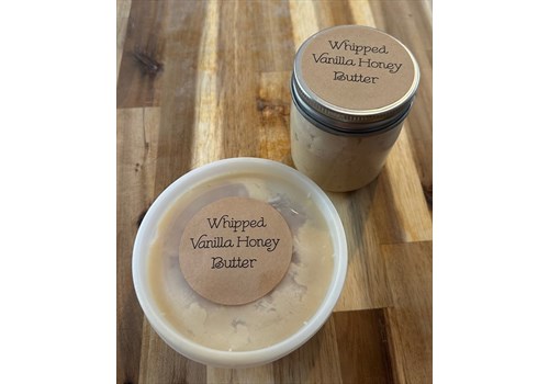 8 ounces of whipped vanilla honey butter. Choose from a plastic deli container or our plastic screw top mason jars.