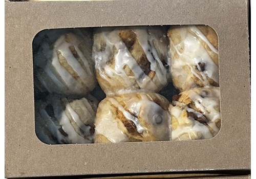 6-packs of our cinnamon sweet rolls. Each roll has cinnamon chips inside and a drizzle of sugar icing on top.