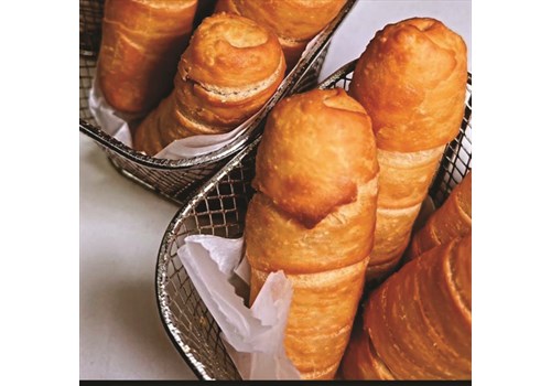 The tequeno is made by taking a stick of chesse, wrapping it in pizza dough, and then frying it.