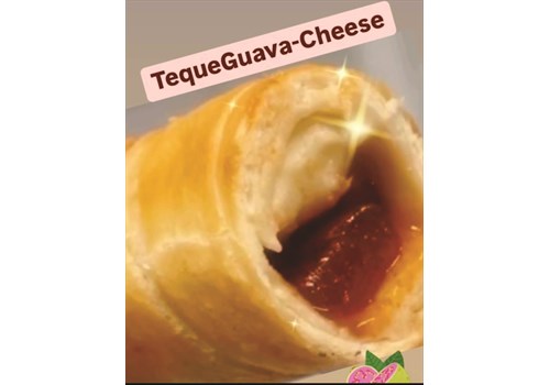 The tequeno is made by taking a stick of chesse and Guava, wrapping it in pizza dough, and then frying it.