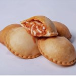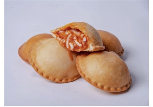 Is a piece of pizza dough made with wheat flour that can be filled with different flavors. It pre-cooked, frozen, and ready to be fried or baked offering a crispy and delicious option at any time