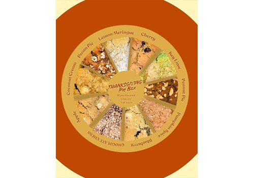 All your favorite holiday pies, reimagined as cookies! Each box includes 10 pie-flavored cookies—Pecan Pie, Lemon Meringue, Cherry, Key Lime, Peanut Pie, Pumpkin Spice, Blueberry, Chocolate Chess, Apple, and Coconut Cream. A sweet sampler for sharing, gifting, or keeping all to yourself. Limited seasonal release. Keep refrigerated or frozen.