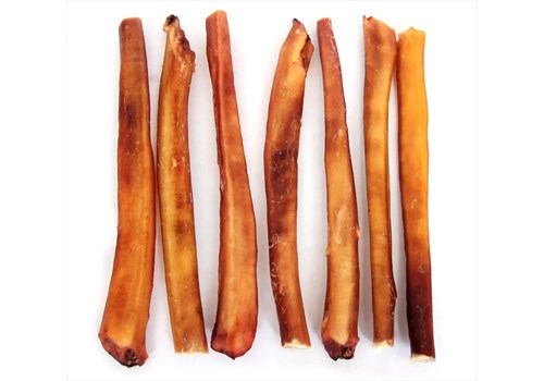 Our 12-Inch, No-Odor Jumbo Bully Sticks are a fantastic option for aggressive chewers. These long-lasting chews are the thickest bully sticks we offer. They're ideal for powerful chewers that quickly chomp through thinner chews. Our bully sticks are dried for hours to remove as much moisture as possible.