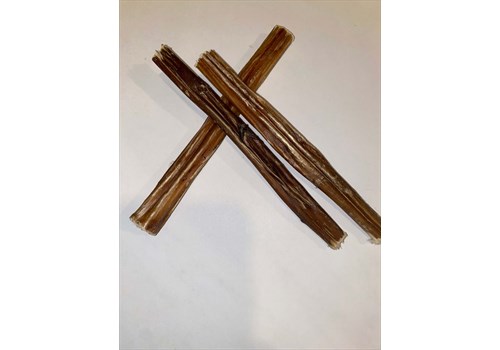 Our 6 inch No- Odor Bully Sticks are perfect for smaller to medium breeds of dogs. Large dogs love them too, but many larger dogs can eat a 6 inch Bully Stick fairly quickly. 6 inch Bully Sticks are great snacks for large furbabies but the perfect size for a smaller dog. They are made from free-range cattle and are a great choice for an all-natural dog chew. All of our Bully Sticks will promote healthy teeth and gums because of the chewing action and saliva generation required to eat the stick.