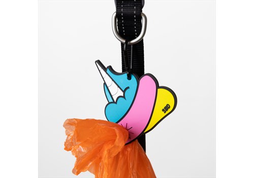 small BIG Dog's DINGLEBERRIES are a fun, hands free, dog poop bag holders. No more holding the warm poop waste bag in your hand, while juggling your dog, the leash, holding your phone, a flashlight and a drink or anything else. Perfect for every situation, especially walks or runs with no trash can in sight.